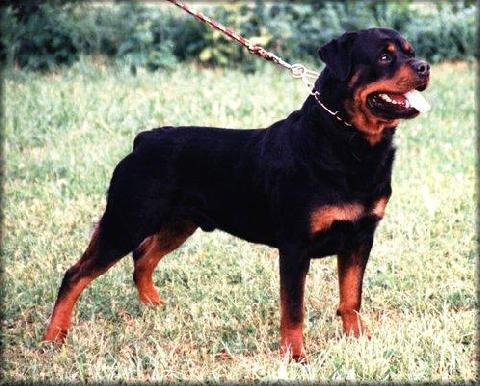 Крупный, крепкий, костистый и в превосходной кондиции. Голова типичная, короткая широкая морда, глаза 2Б. Уши правильно поставлены и расположены. Глубокая широкая грудь. Плечи правильные. Лапы прямые. Линия верха очень хорошая. Задние конечности с сильной мускулатурой и очень хорошими углами, правильного постава. Естественная шерсть в очень хорошем состоянии, на задних конечностях небольшие нацветы. Подпал красно-коричневый везде в четких границах. Губы темные, десны частично пятнистые. Движения свободные, плавные, размашистые. Ножницеобразный прикус. Р3 сверху оба поперек.