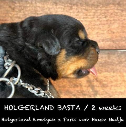 РОДОСЛОВНАЯ |  | | Инбридинг: Lex vom Hause Edelstein: 4:2; |  | Хольгерланд Баста [P] , , 2023 |