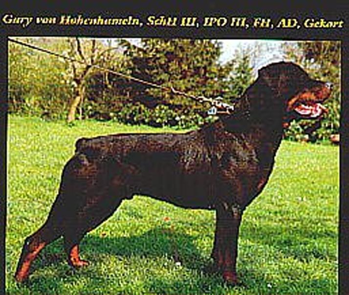 , ADRK KJS, EuW 93, Int.Ch, VDH.Ch IPO - 3, SchH/VPG - 3, AD, BH, FH - 1 Noris vom Gruntenblick [P] ADRK 073857, HD-B Wolfgang Gaa, 1988 |
