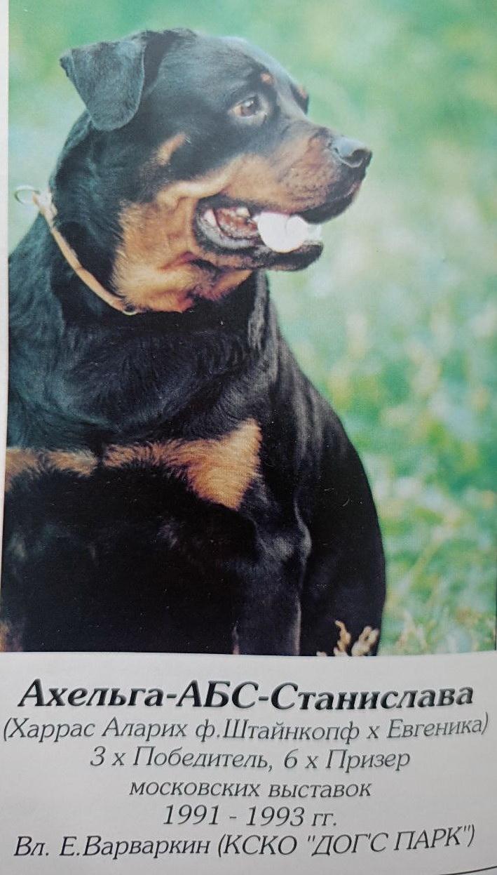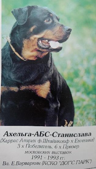 РОДОСЛОВНАЯ |  |  | Ахельга-Абс-Станислава [P] РКФ 67483, Е.Варваркин, 1990 |