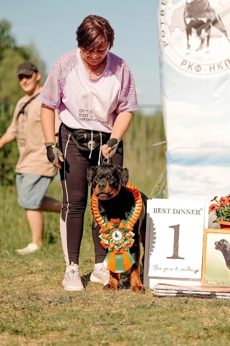 | 1 | 26 / 43 | | 06.07.2025 | монопородная | Межрегиональный Чемпионат Ротвейлеров (Тверь) КЧК в каждом классе -Россия- | Ciu Xibin | класс щенков | 003, очень перспективный