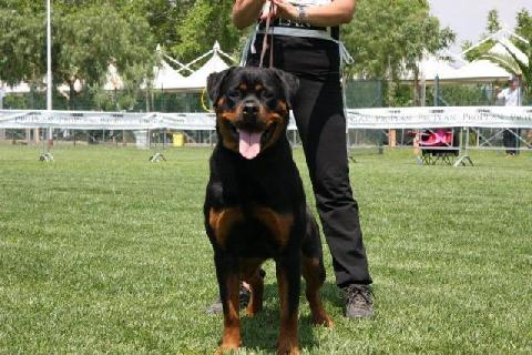 EuW 2002, Int.Ch, Aut.Ch 2002, 2003, Swe.Ch, VDH.Ch, ... IPO - 3, SchH/VPG - 3, AD, BH, FH - 1 Mambo von der Crossener Ranch [P] ADRK 099808, HD-B, ED-0 Haiko Gunter, 1998 |